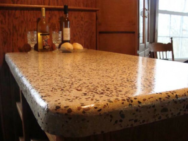 Concrete countertops have a wide range of color options to choose from. Color charts as with all colored concrete is a very close approximation to the actual color, this is dependent on variation of material in the concrete mix itself. The countertops are polished to a “glassy” like smooth feel. The type of sealing is a thing of choice. A penetrating sealer is applied to keep things from soaking into the surface on all countertops, this does not affect the look of the countertop. A topical sealer is applied to achieve a glossy look to the countertop. Also, wire mesh is installed to aid in re-enforcement. Concrete countertops are poured at 1.5’’ thick.