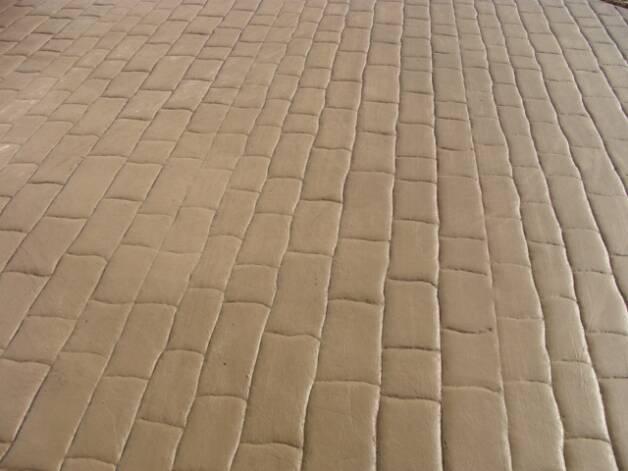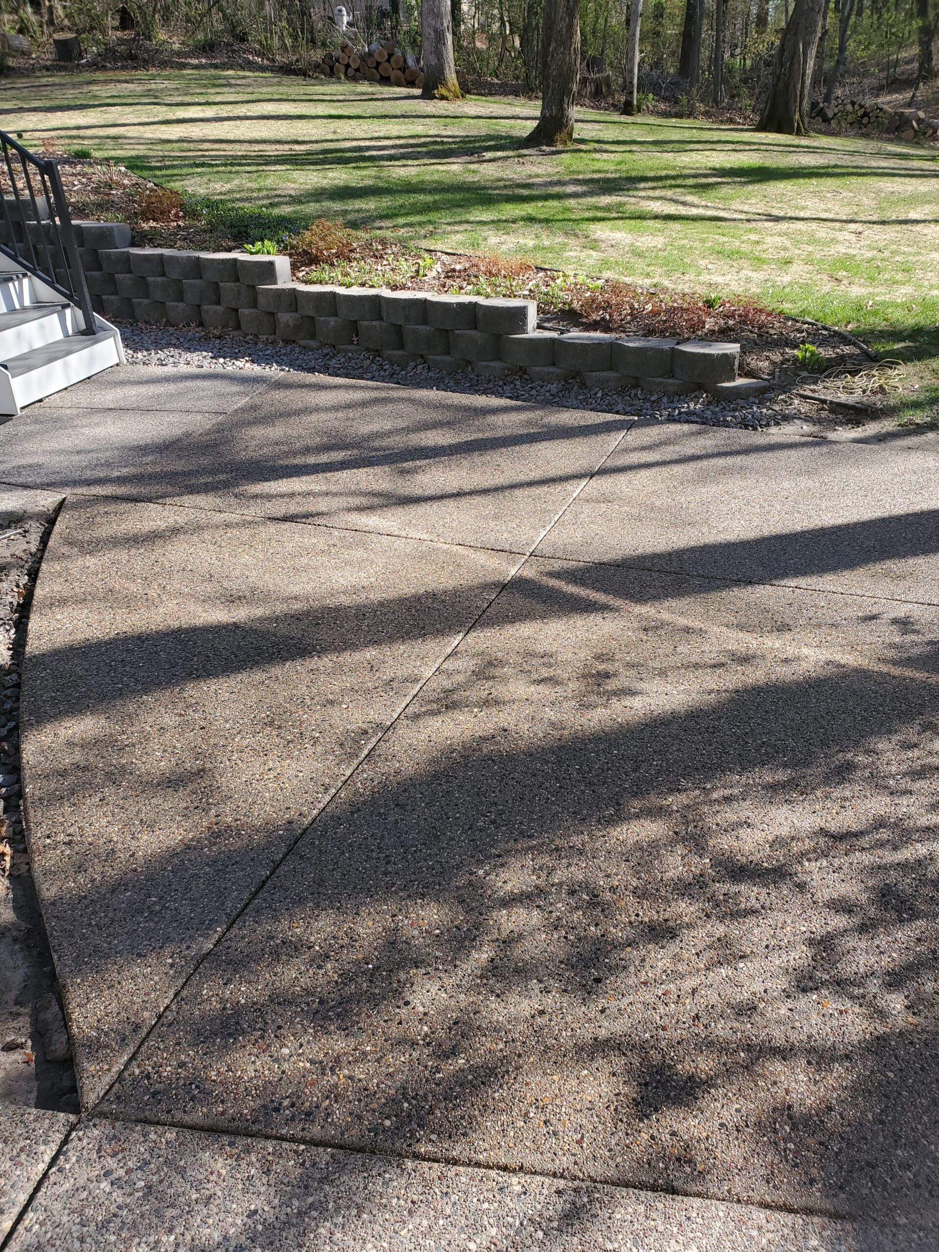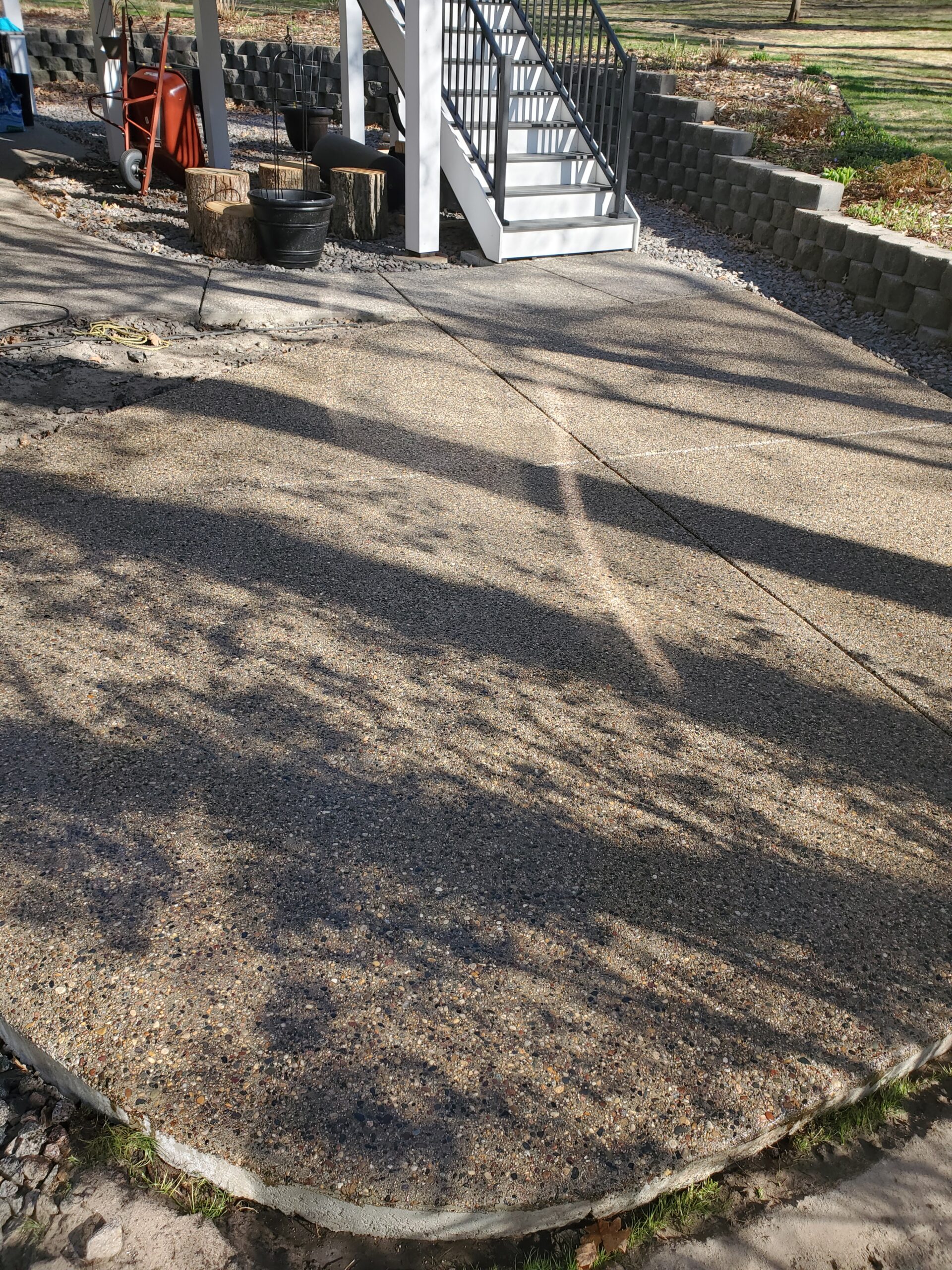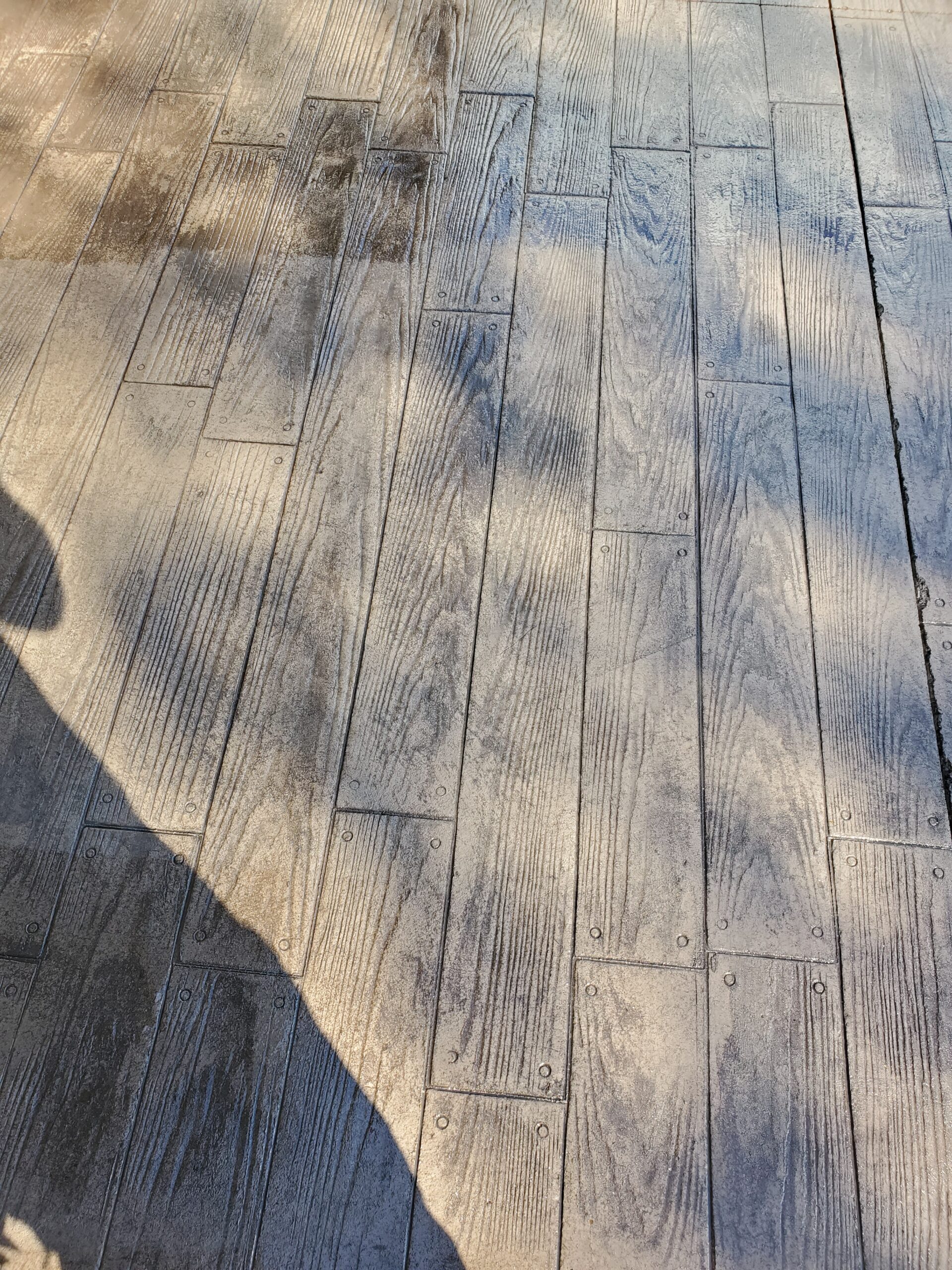 Stamped Concrete Sidewalk in BackyardDecorative concrete is a beautiful yet durable option to pouring concrete for patios, sidewalks, driveways, and concrete countertops. Stamped concrete has come along way with numerous stamp patterns to choose from. Just as there is many different stamp patterns, there are many colors for coloring concrete as well, and antiquing colors that add that realistic final touch. With stamped patios what is included in the price is the usual things that are required for pouring concrete as well as color for concrete, antiquing color, saw cutting relief joints, pressure washing slab, and first coat of sealer. The sealer is to protect the concrete as well as to beatify it giving the stamped concrete a “wet look“.